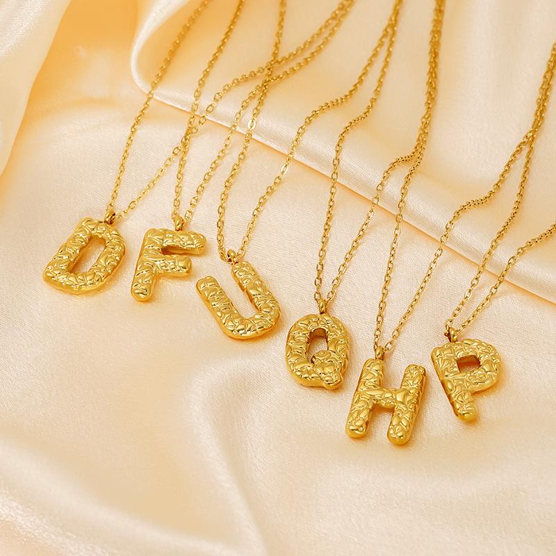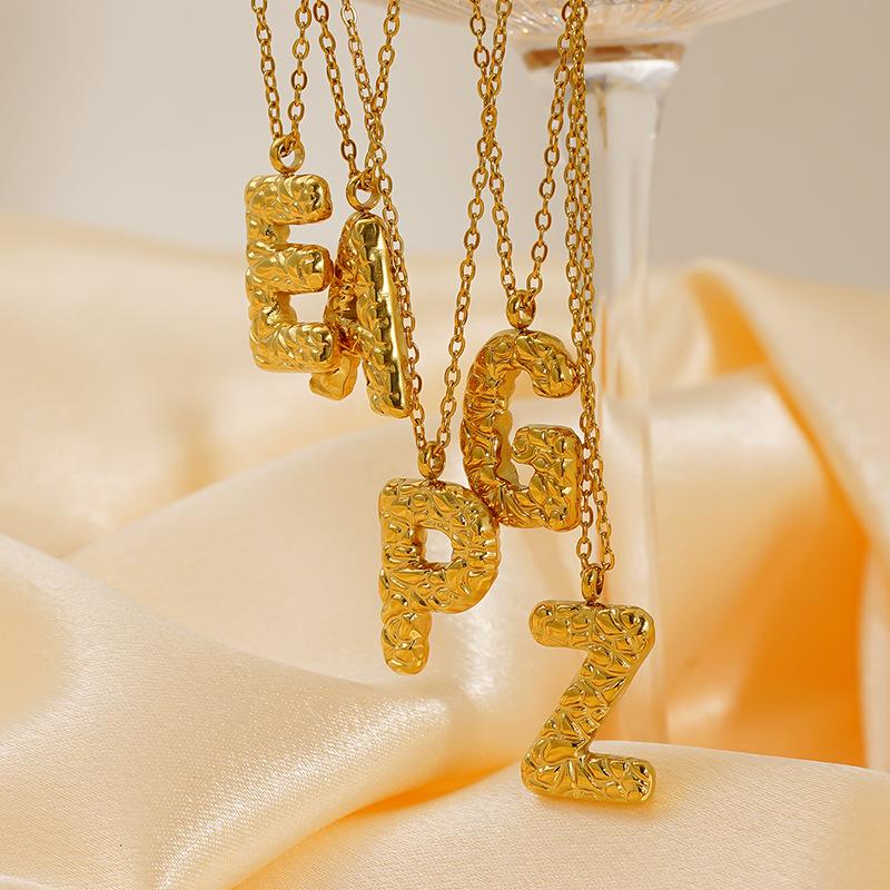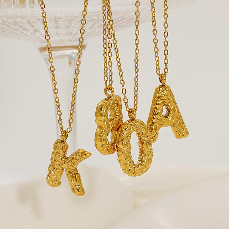 Lava-textured Letter Necklace for Women - 26-Letter Pendant, Collarbone Chain, Fade-resistant, Metal Coating, Stylish Accessory
