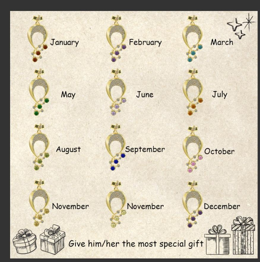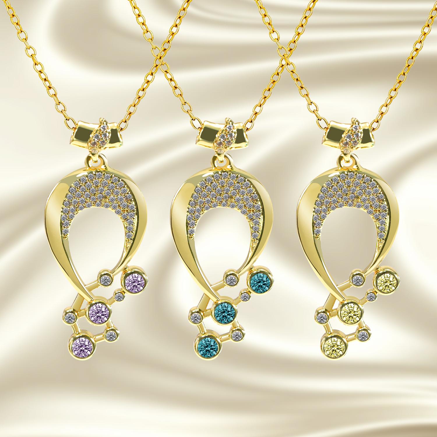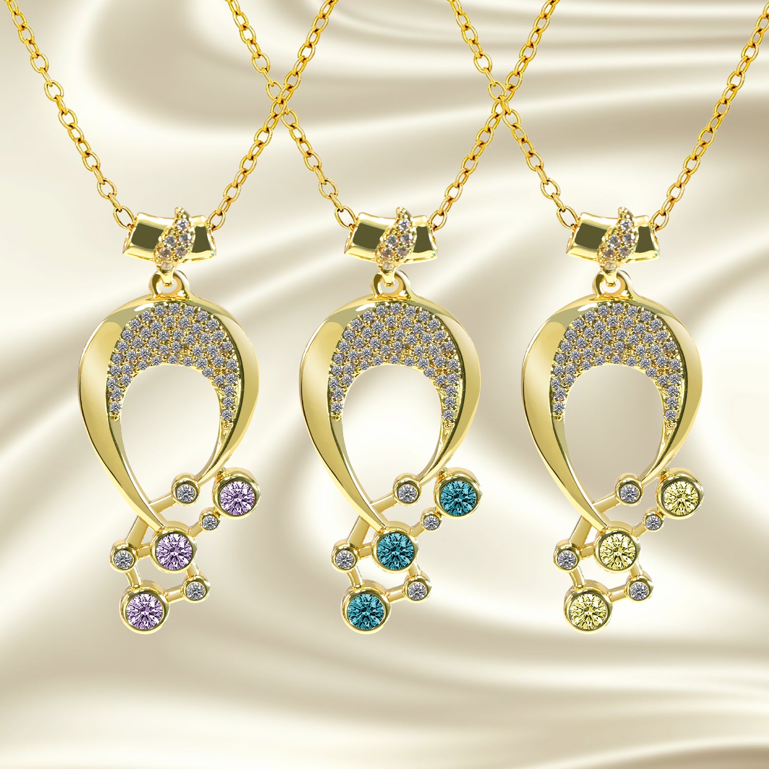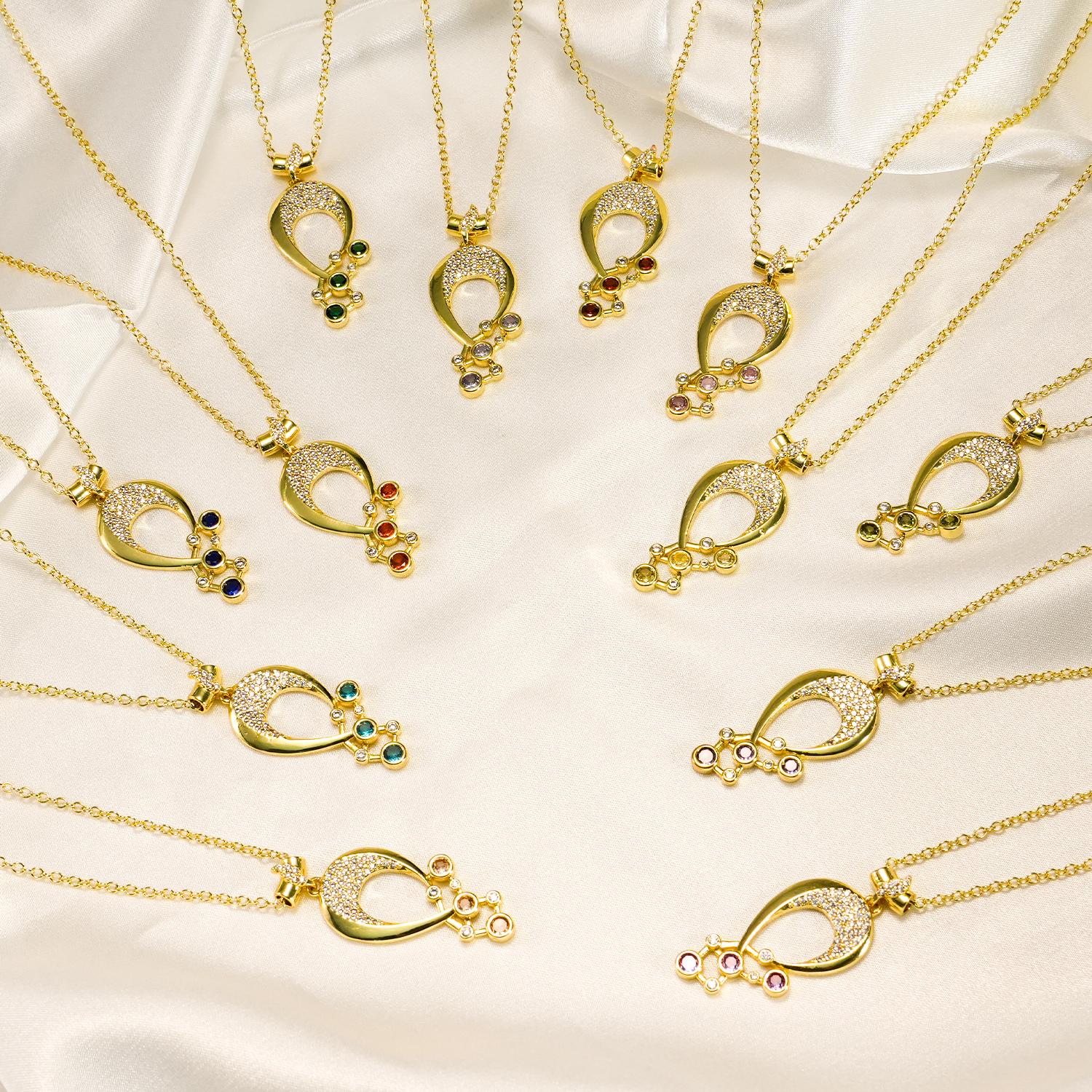 Luna Birthstone Necklace,Multiple Color Pendant Necklace,Plated Pendant Necklace with Gemstone Variations