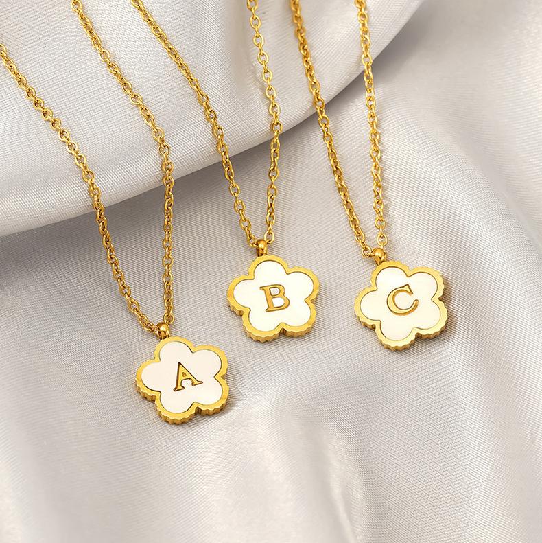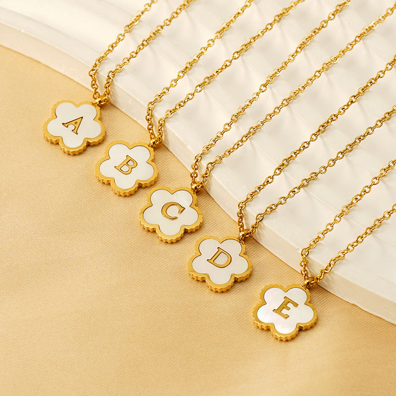Titanium Steel Five-Petal Flower 18K 26-Letter Shell Pendant Necklace Personalized Initial A B C D Jewelry