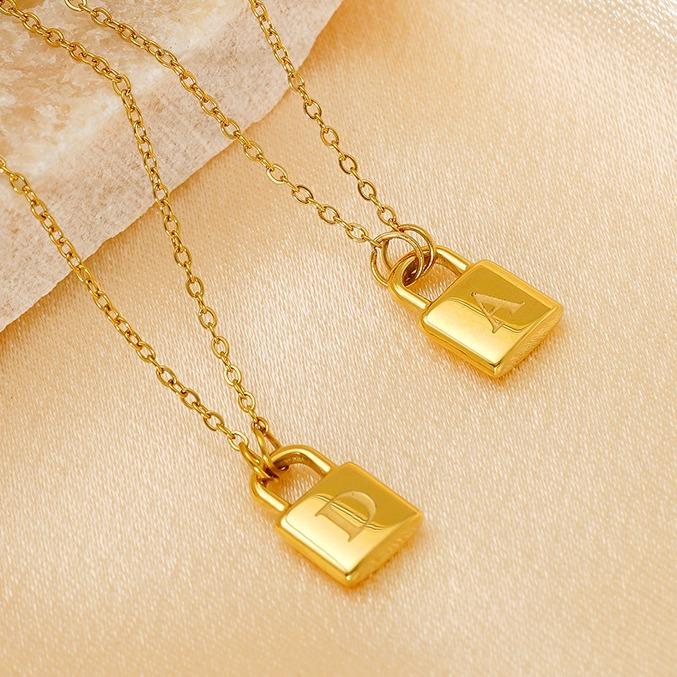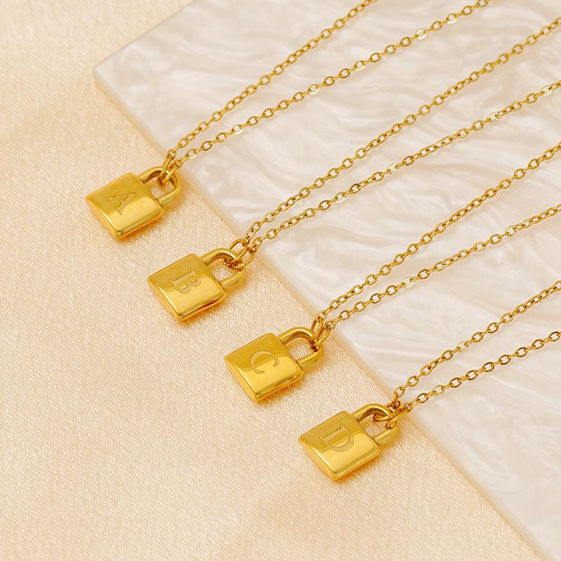 Titanium Steel Non-Fading Lock Head 26-Letter Clavicle Necklace for Women Gold Color Chain Jewelry